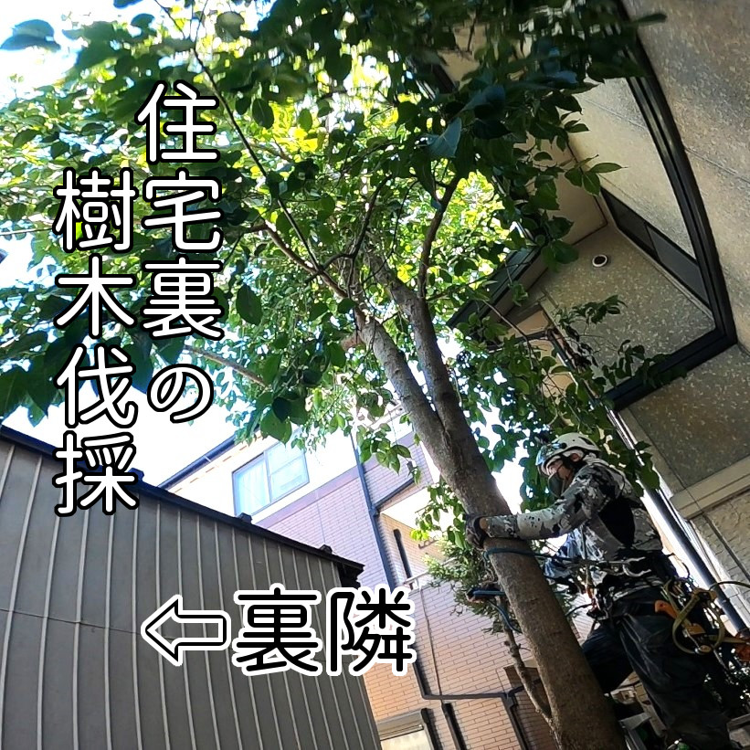 春日部市 | 住宅裏の樹木伐採|狭いスペース